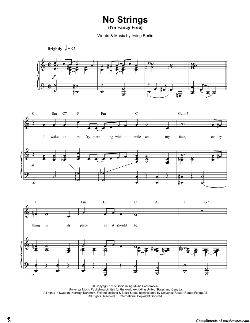 I wake up ev'ry morning with a smile on my face, ev'rything in its place as it should be. |