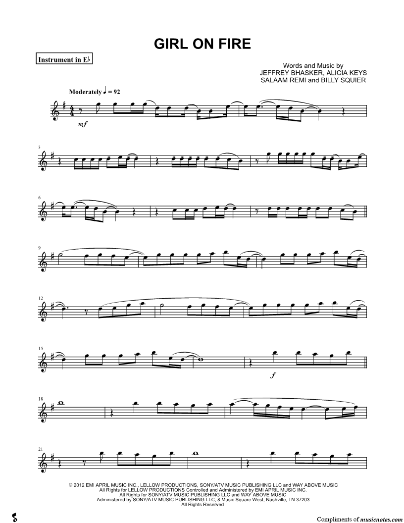 Girl on Fire - Eb Instrument |