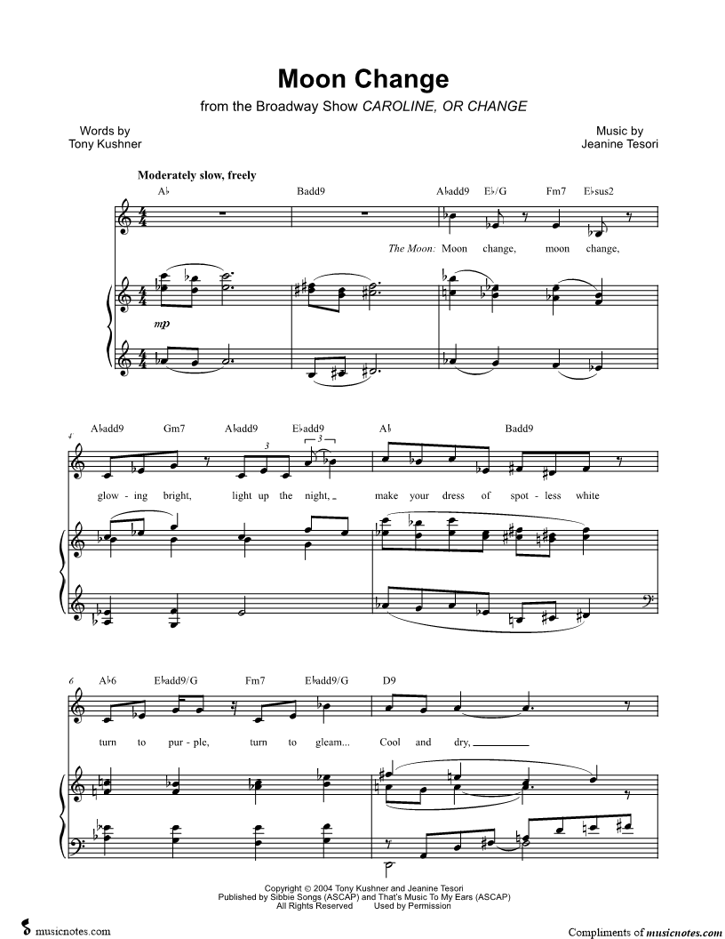 Moon change, moon change, glowing bright, light up the night, make your dress of spotless white turn to purple, turn to gleam... |