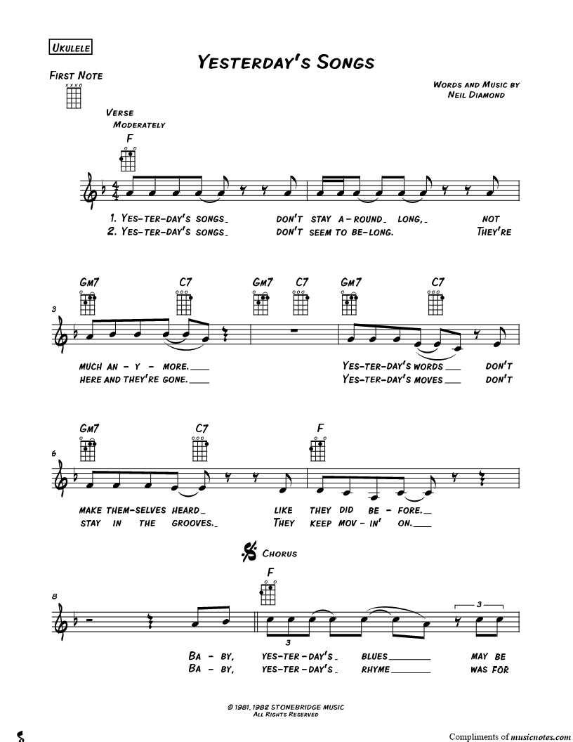 Leadsheets typically only contain the lyrics, chord symbols and melody line of a song and are rarely more than one page in length. Musicians will often use these skeletons to improvise their own arrangements. Leadsheets often do not contain complete lyrics to the song.