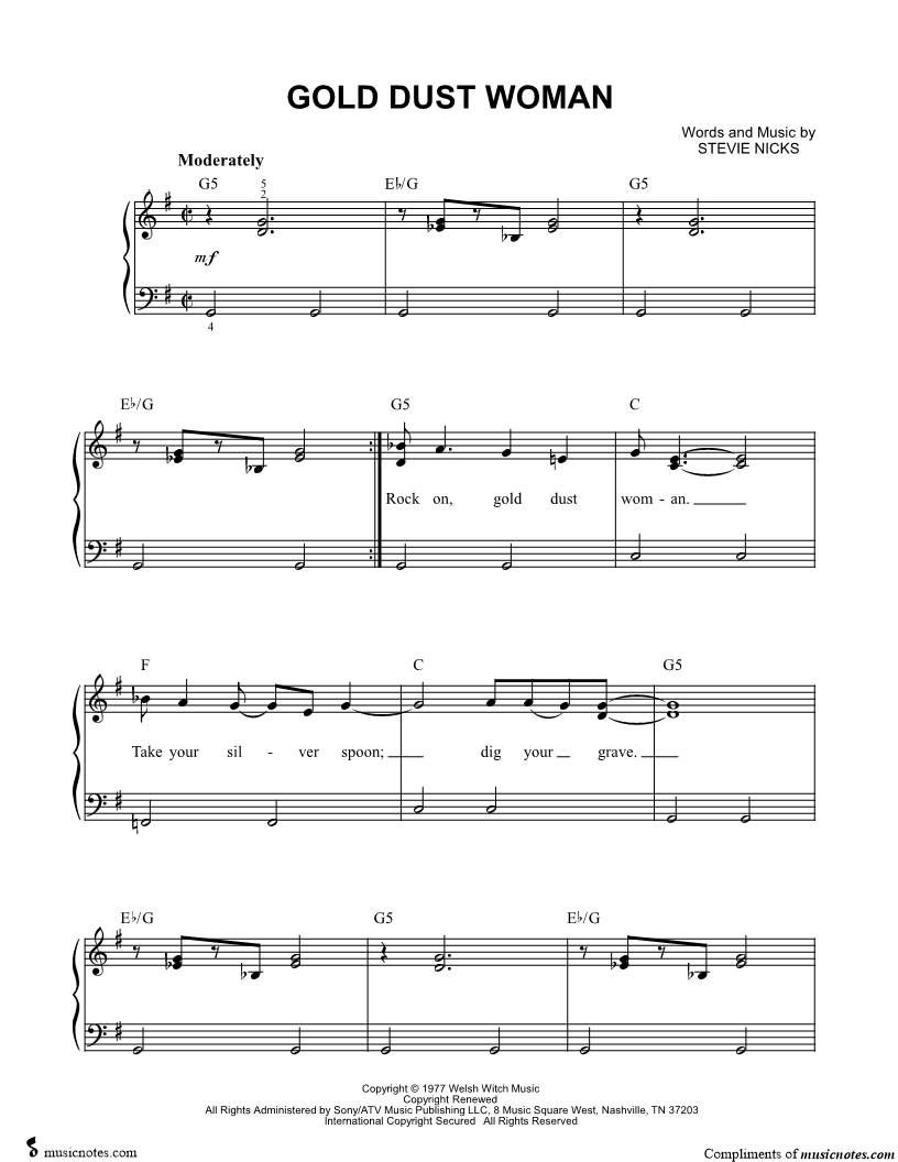 Musicnotes sells a wide variety of digital sheet music products including Singer Pros, Beginner Notes, Choral music, Piano Solos, Lead Sheets, Piano/Vocal/Guitar, Solo and Accompaniment, and fretted instrument tablature.