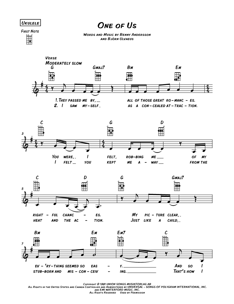 Leadsheet Ukulele/Vocal/Chords |