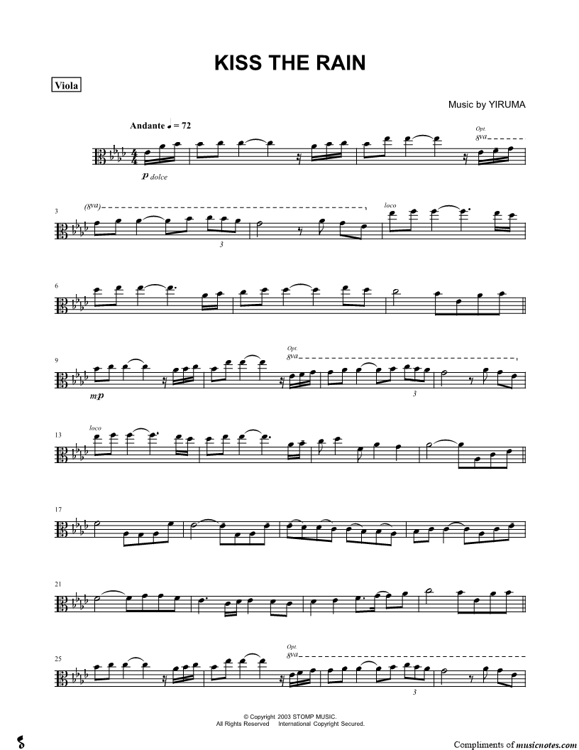 Kiss the Rain - Viola |