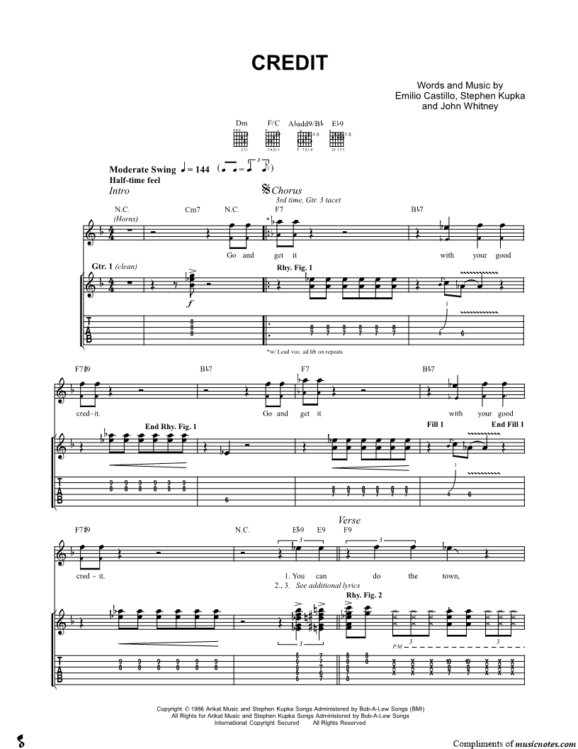 Voice, range: D5-C6 Guitar 1 Guitar 2 or Organ Guitar 3 or Brass Backup Vocals | |