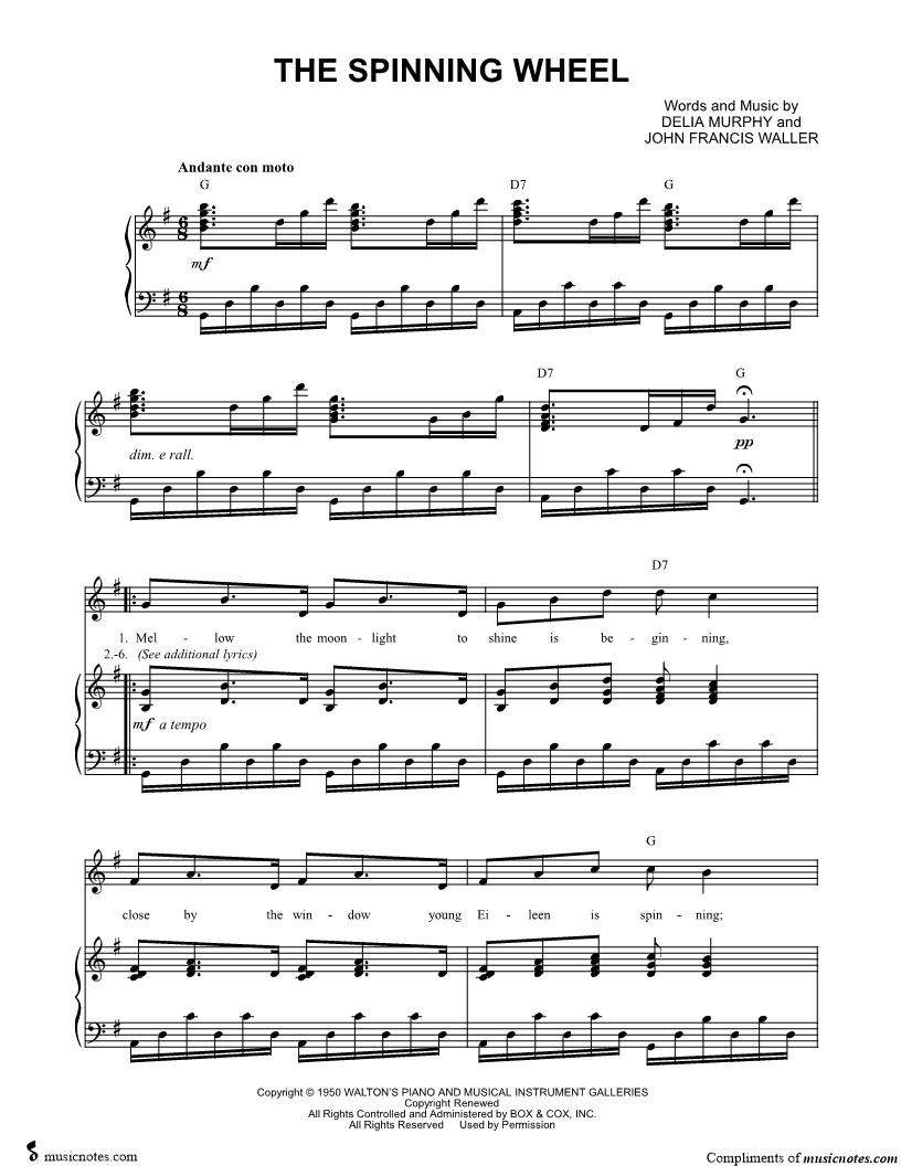 Mellow the moonlight to shine is beginning, close by the window young Eileen is spinning; |