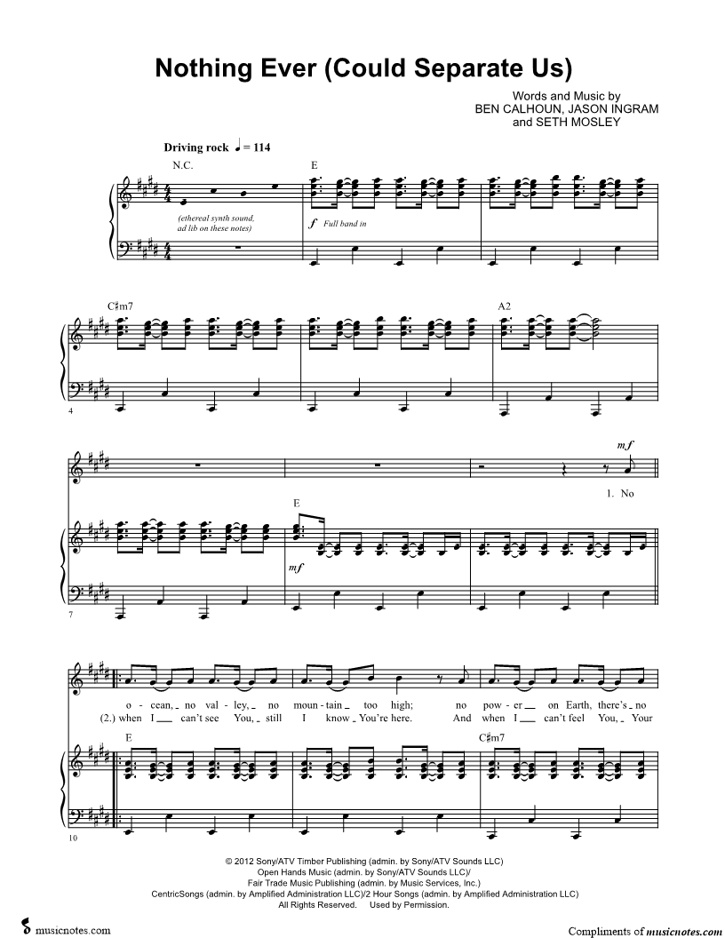 No ocean, no valley, no mountain too high; no power on Earth, there's no distance too wide; no height or no depth could keep me from Your love. |