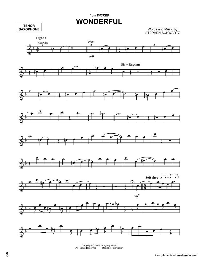 Wicked - Tenor Sax Play-Along Pack |