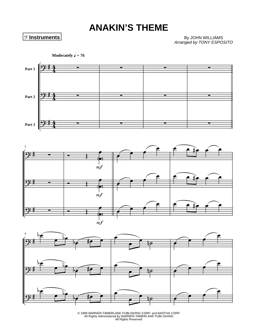 Anakin's Theme - Bass Clef Instrument Trio |