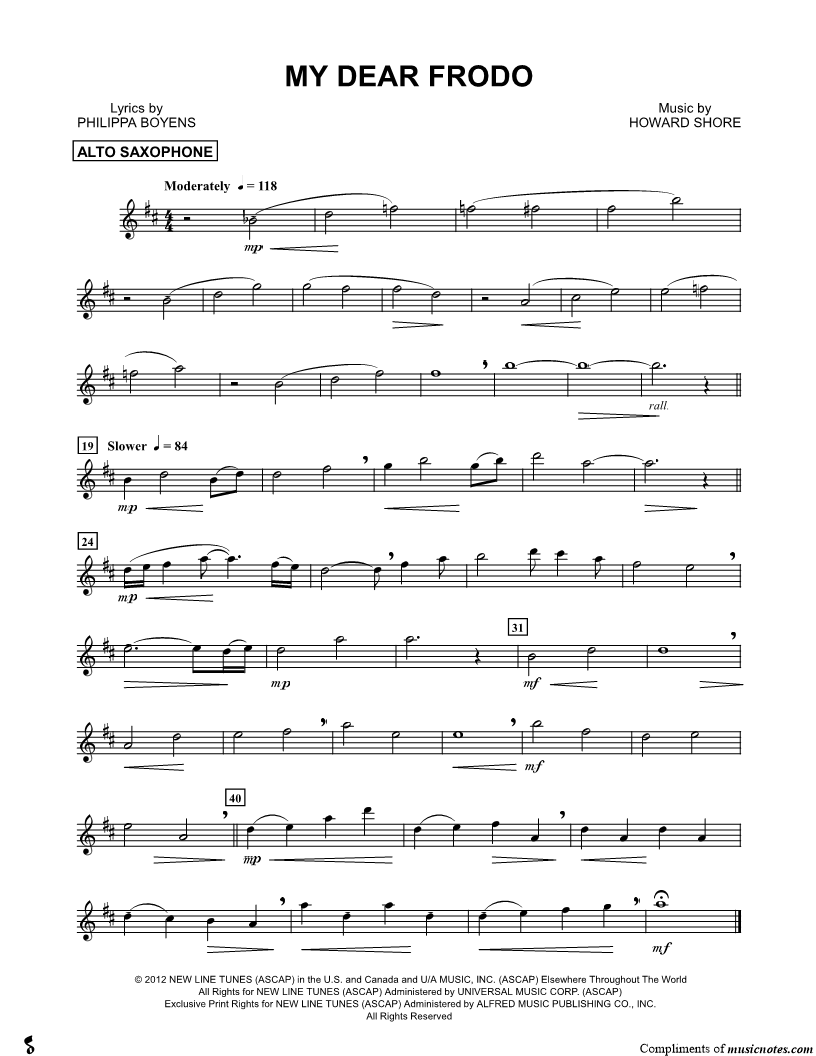 My Dear Frodo - Alto Saxophone |
