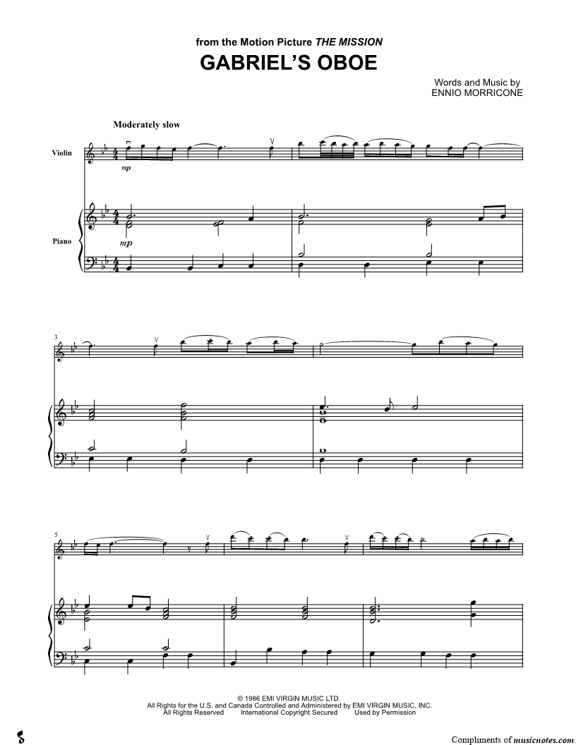 Gabriel's Oboe - Piano Accompaniment (Violin) |