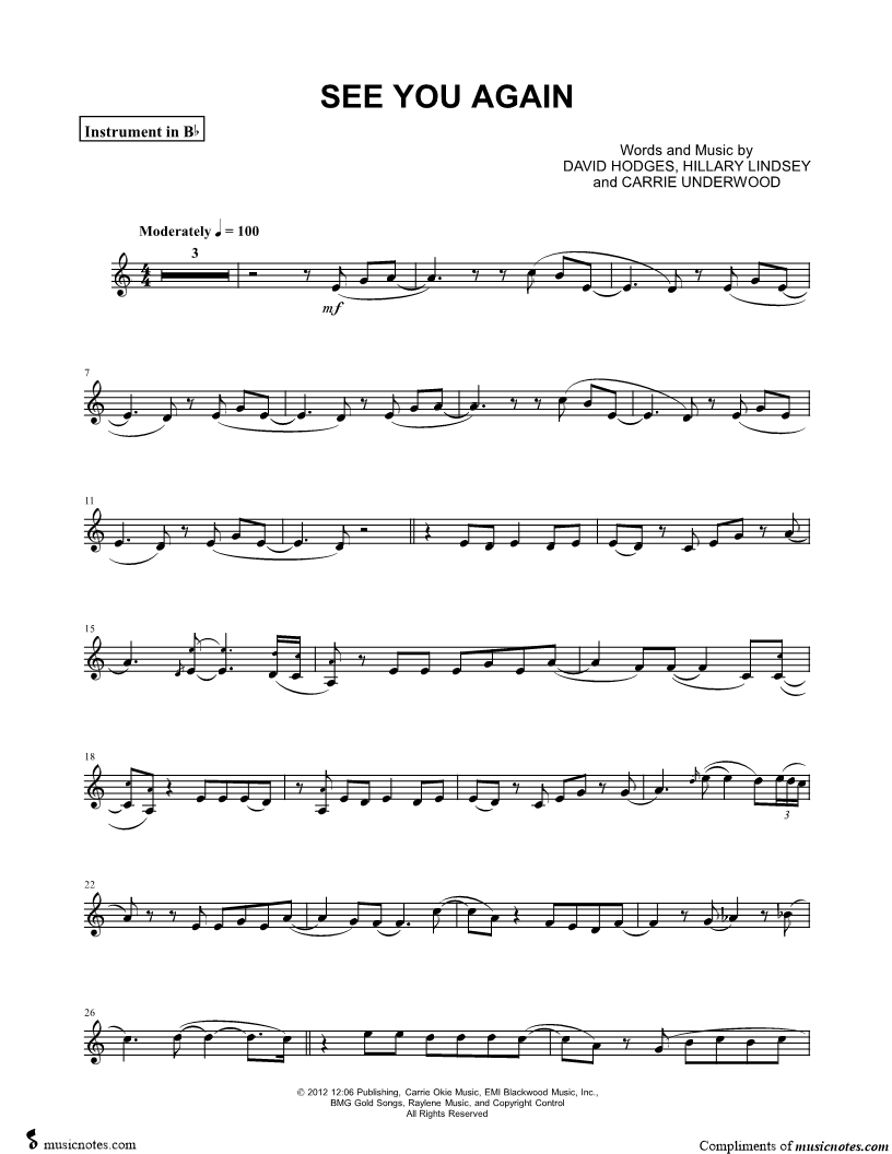 Bb Instrument, range: A3-F5 (Trumpet, Soprano Saxophone, Tenor Saxophone or Clarinet) | |