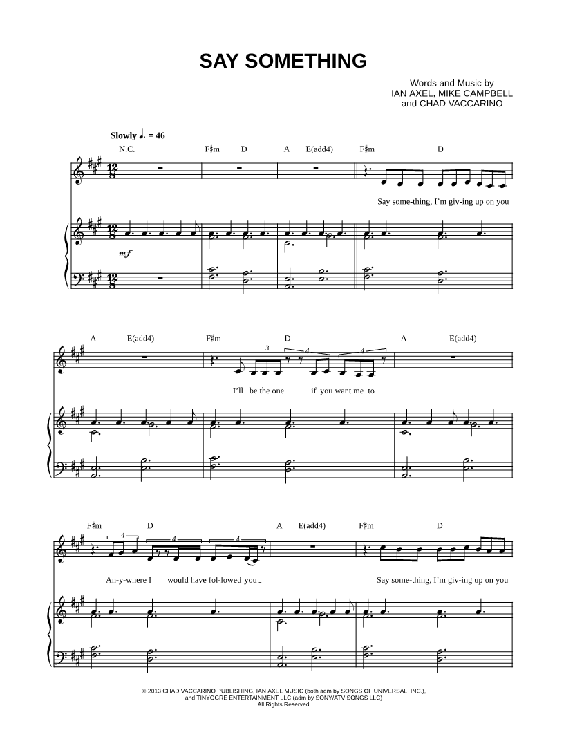 Say something, I'm giving up on you |