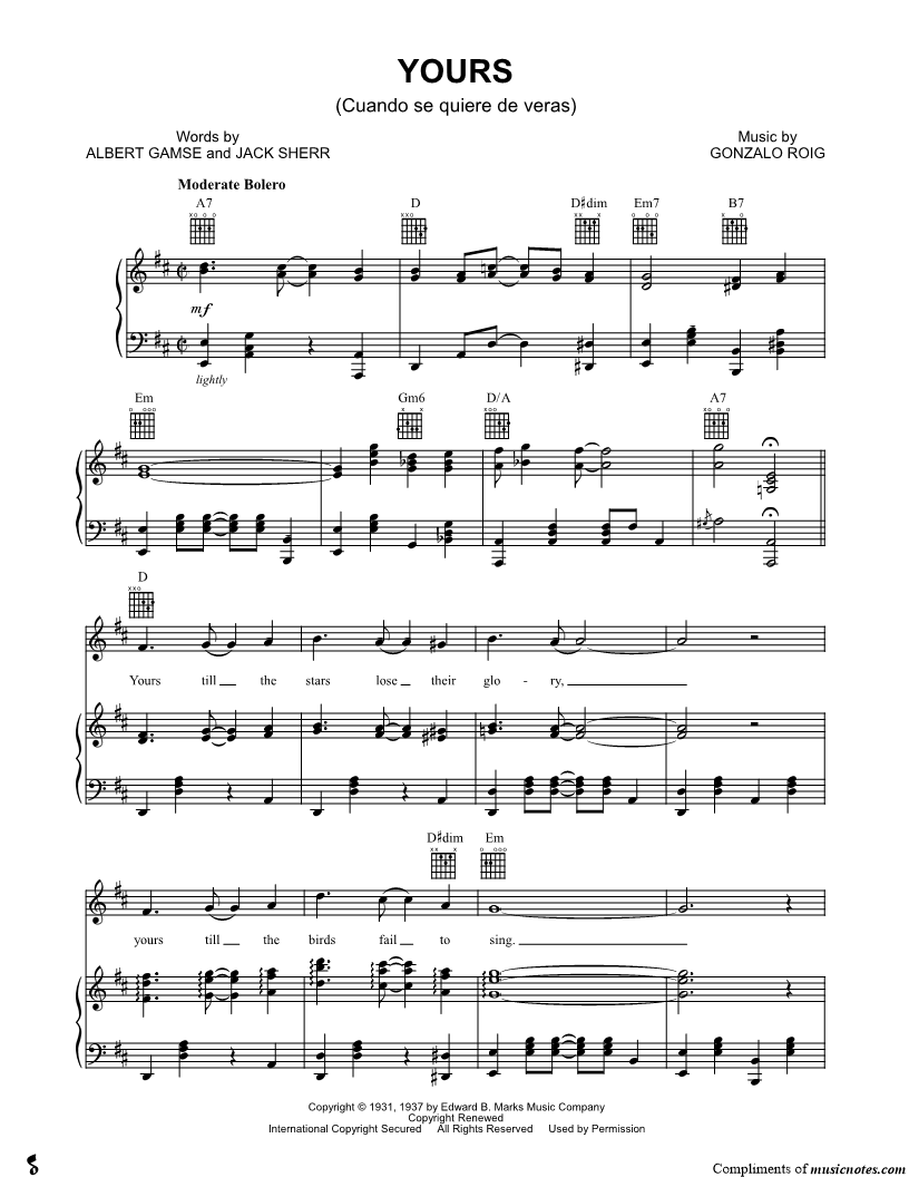 Yours till the stars lose their glory, yours till the birds fail to sing. |