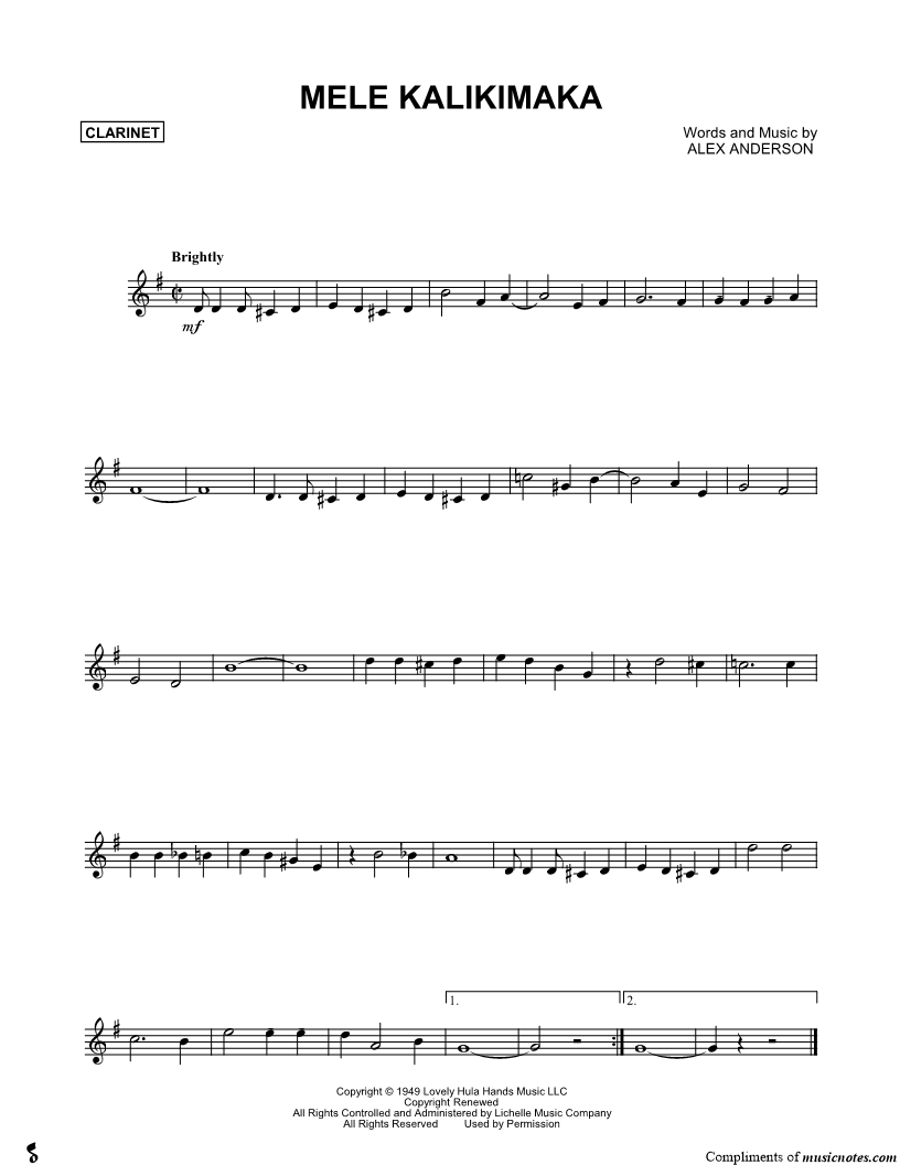 Clarinet, range: C#4-E5 | |
