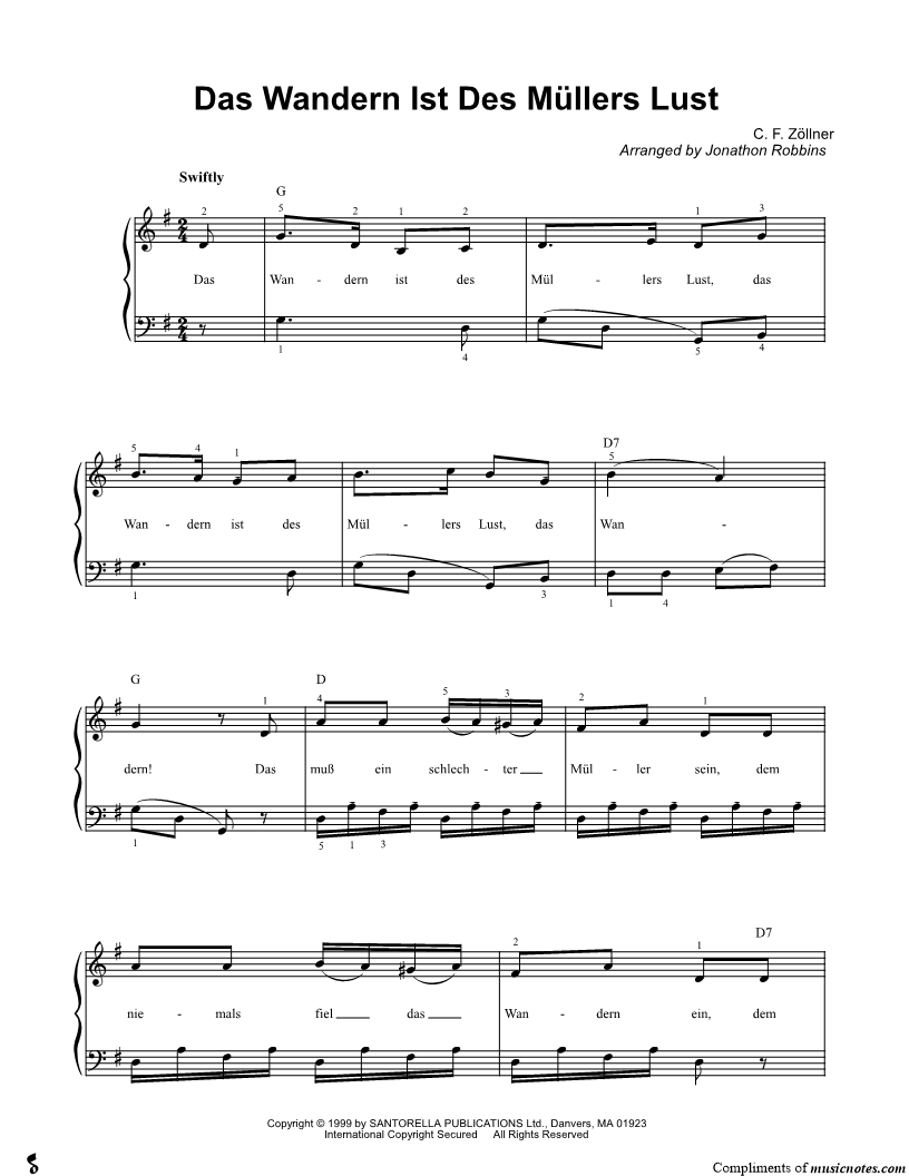 Das Wandern ist des Müllers Lust, das Wandern ist des Müllers Lust, das Wandern! |