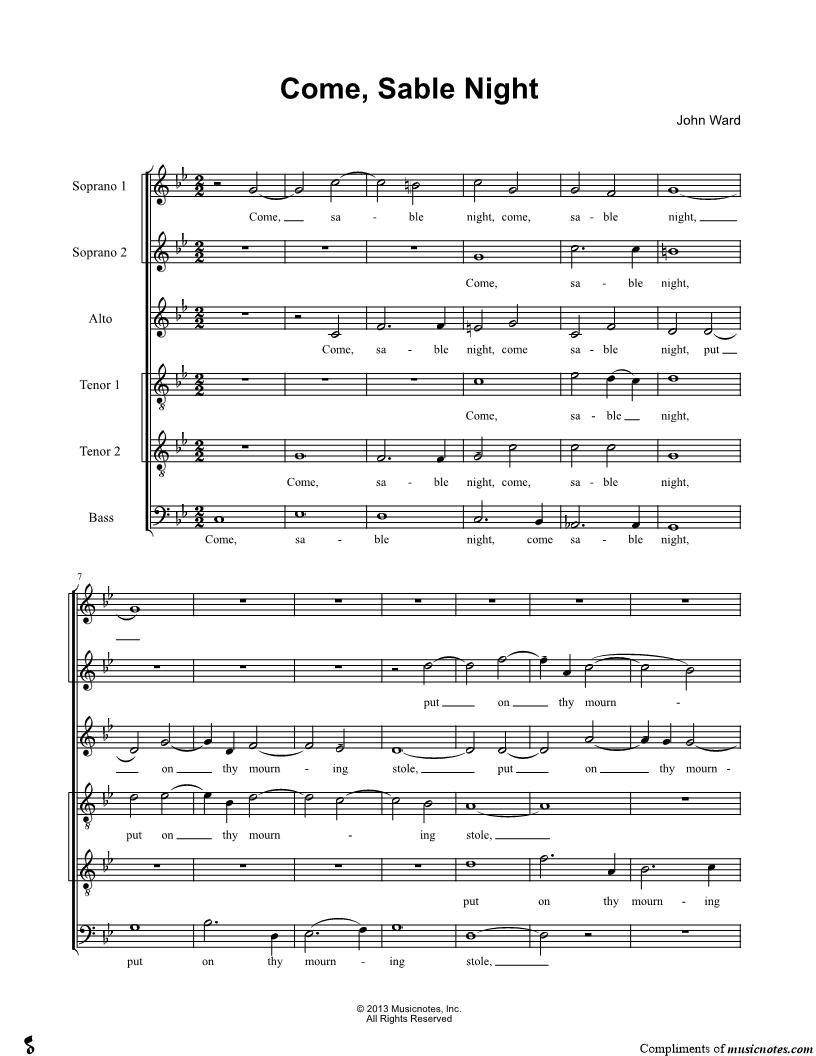 Come, sable night, come, sable night, put on thy mourning stole, put on thy mourning stole, and help Amyntas sadly to condole, sadly to condole, sadly to condole, sadly to condole, to condole, sadly to condole. |