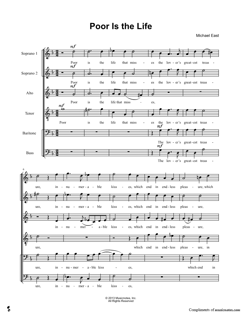 Poor is the life that misses the lover's greatest treasure, innumerable kisses, which end in endless pleasure, which end in endless pleasure. |