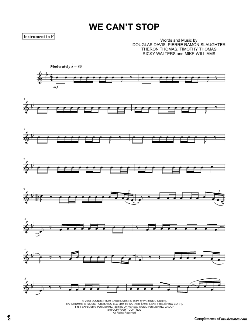 We Can't Stop - F Instrument |