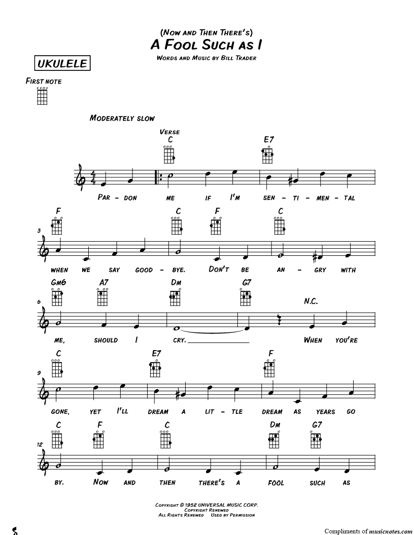 Ukulele/Vocal/Chords Leadsheet |