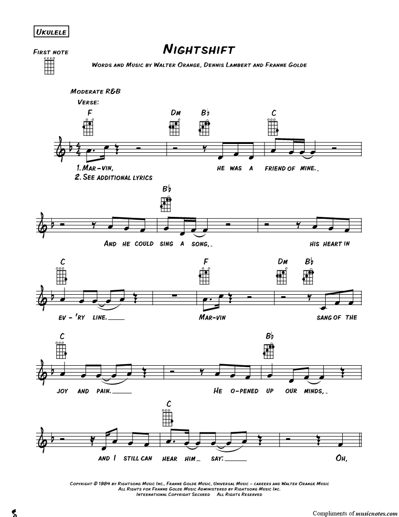Ukulele/Vocal/Chords Leadsheet |