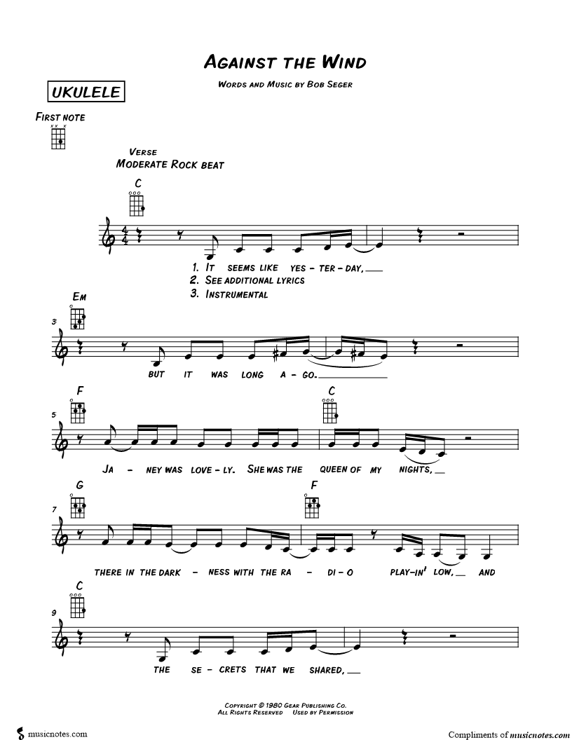Ukulele/Vocal/Chords Leadsheet |
