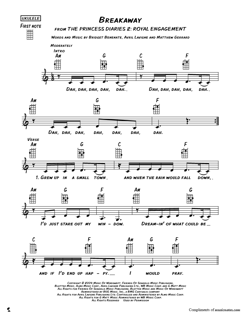 Ukulele/Vocal/Chords Leadsheet |