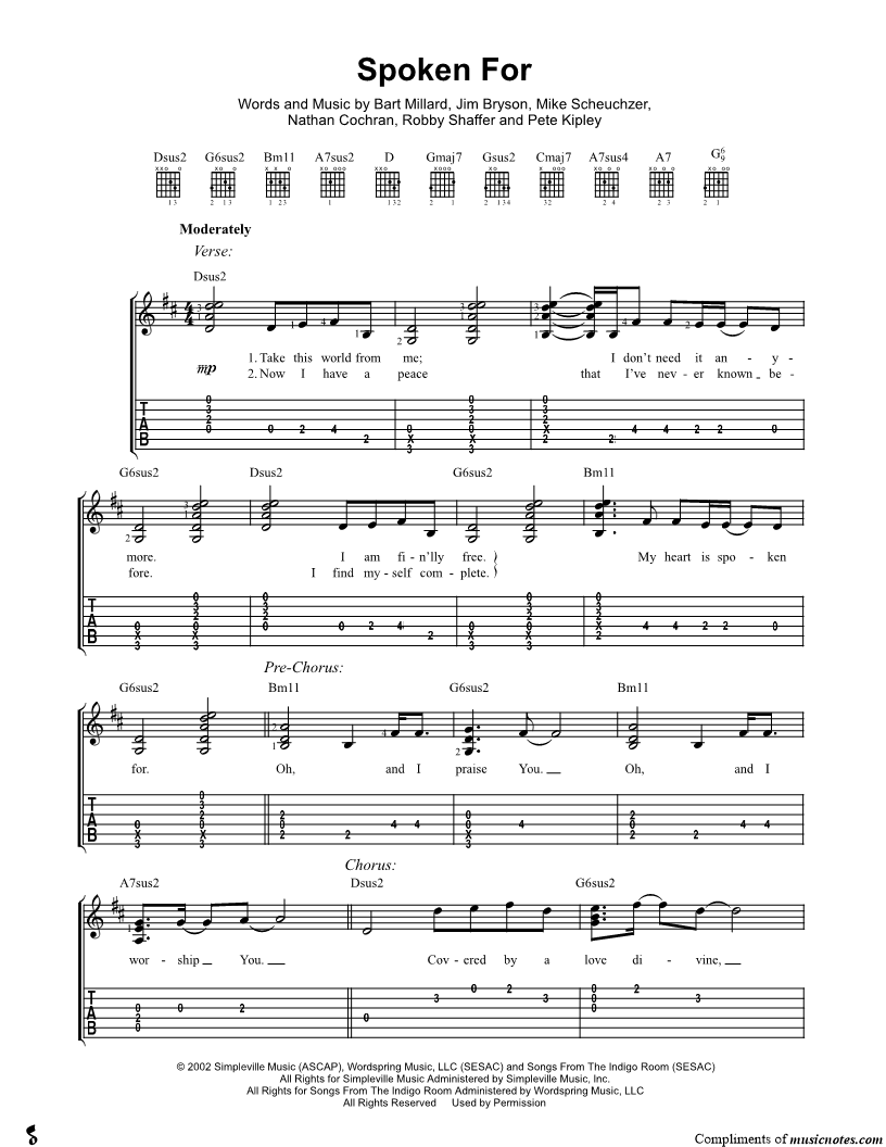Guitar Tab Guitar/Vocal/Chords |
