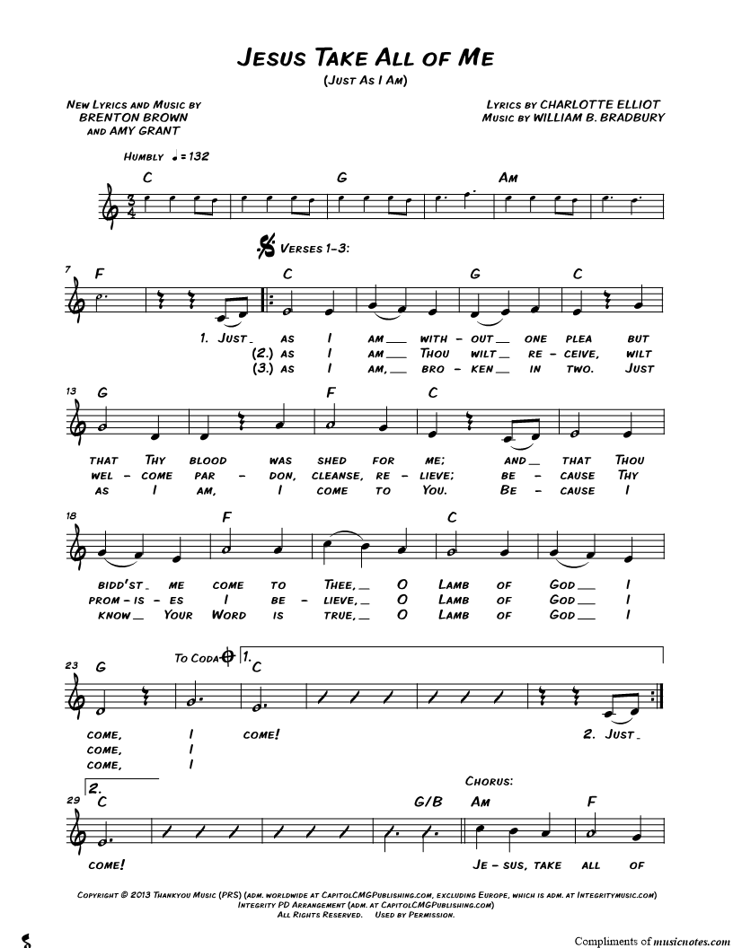 Just as I am without one plea but that Thy blood was shed for me; and that Thou bidd'st me come to |
