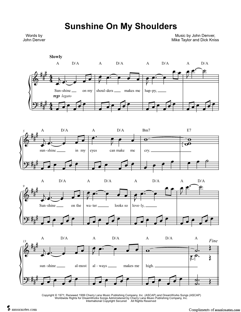 Sunshine on my shoulders makes me happy, sunshine in my eyes can make me cry. |