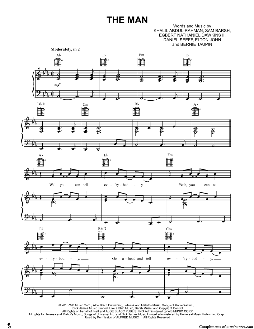 Musicnotes sells a wide variety of digital sheet music products including Singer Pros, Beginner Notes, Choral music, Piano Solos, Lead Sheets, Piano/Vocal/Guitar, Solo and Accompaniment, and fretted instrument tablature.