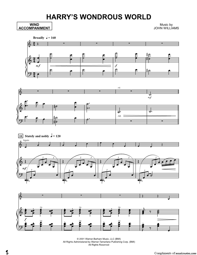 Harry's Wondrous World - Piano Accompaniment (Winds) |