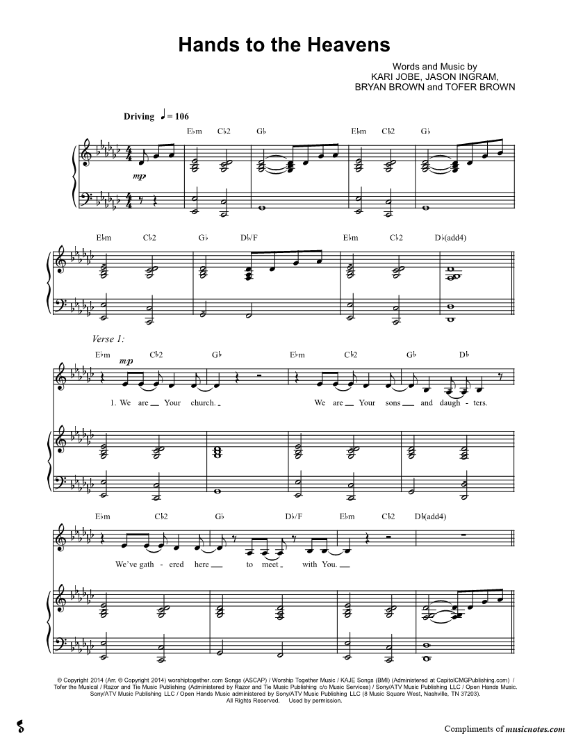 Many of the arrangements on Musicnotes have transpositions available, typically in C Major, as well as 3 sharps and 3 flats. If you do not see your desired key, you can request a transposition by reaching out to Customer Support.