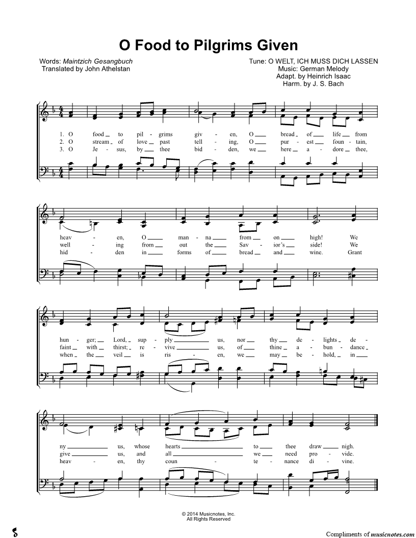 O food to pilgrims given, |