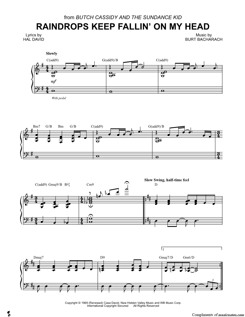 Raindrops keep fallin' on my head, and just like the guy whose feet are too big for his bed, nothin' seems to fit. |