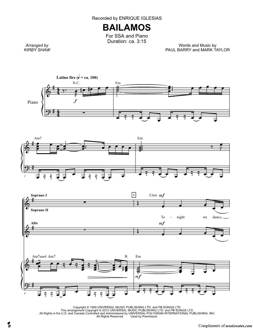 SSA Choir, range: B3-G5 Piano Accompaniment | |