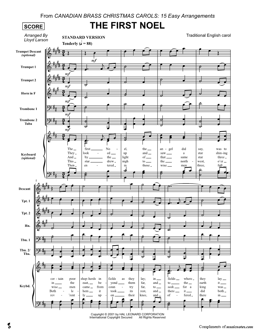 The First Noel - Brass Quintet Score |