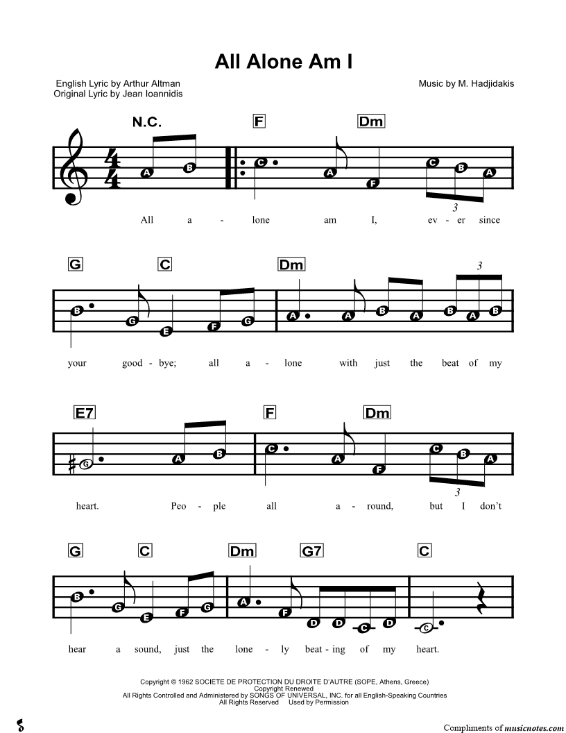 All alone am I, ever since your goodbye; all alone with just the beat of my heart. |
