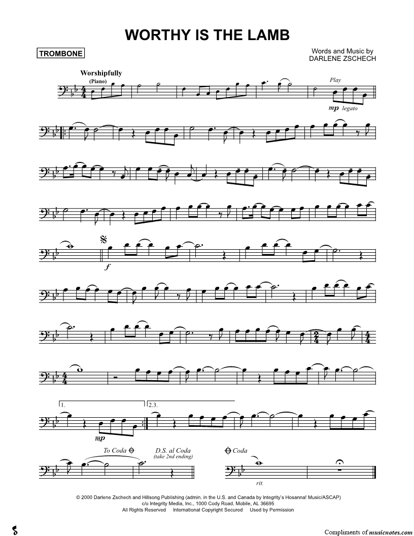 Trombone, range: Bb2-D4 | |