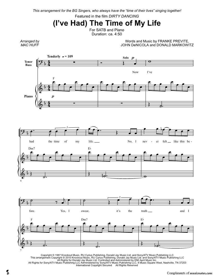 Now I've had the time of my life. |