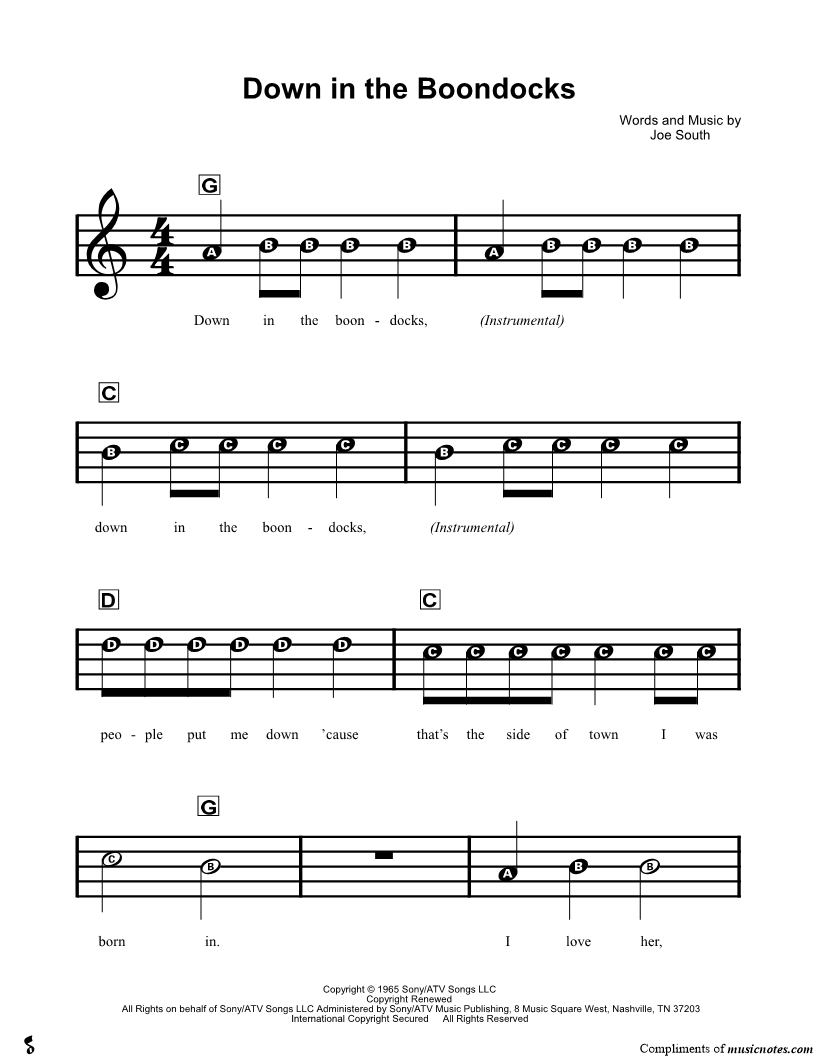 Down in the boondocks, down in the boondocks, people put me down 'cause that's the side of town I was born in. |