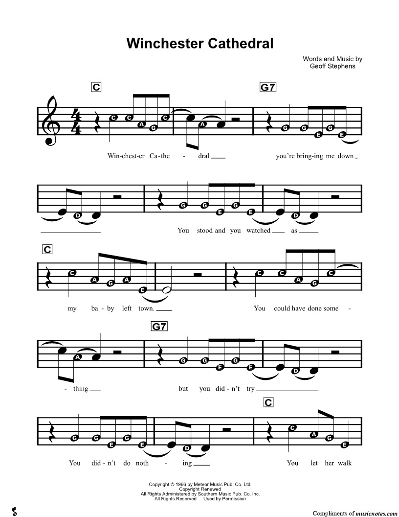 Winchester Cathedral you're bringing me down You stood and you watched as my baby left town. |