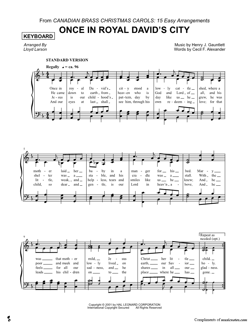 Once in Royal David's City - Keyboard (Brass Quintet) |