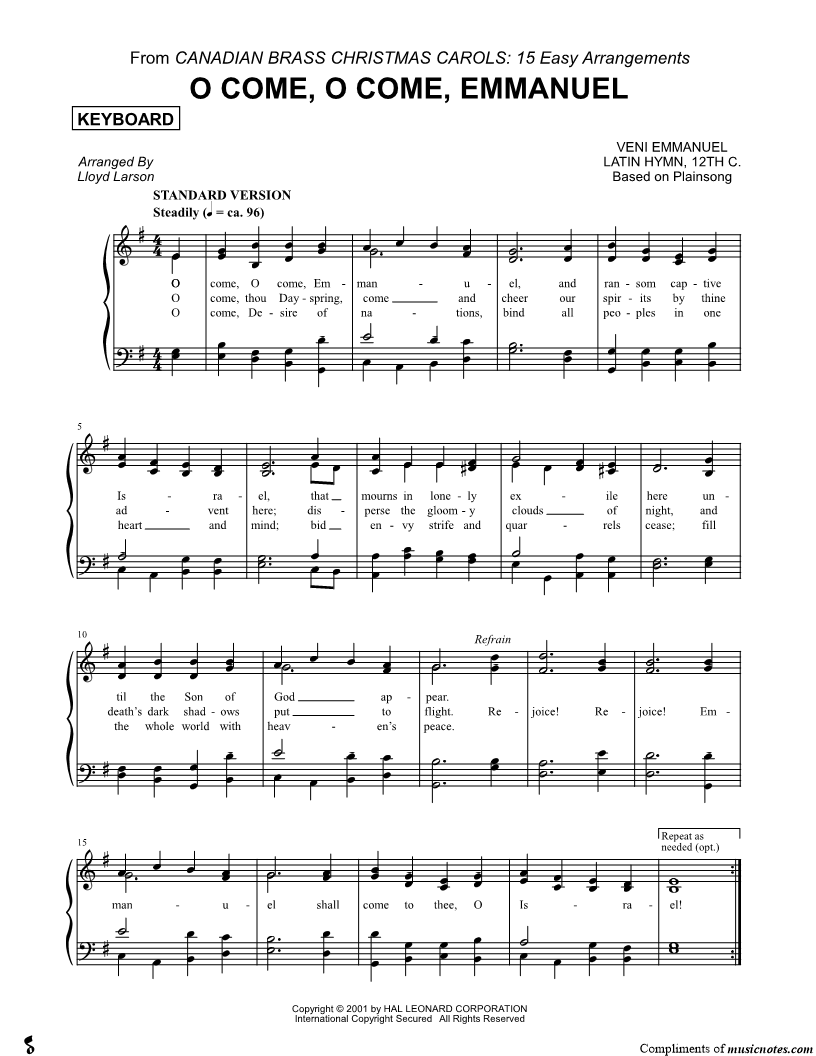 O Come, O Come, Emmanuel - Keyboard (Brass Quintet) |