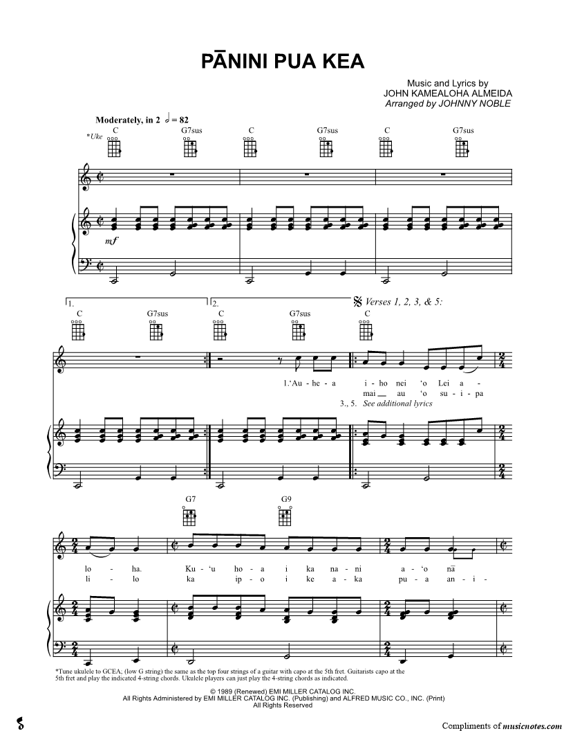 Piano/Vocal/Chords Ukulele/Vocal/Chords |
