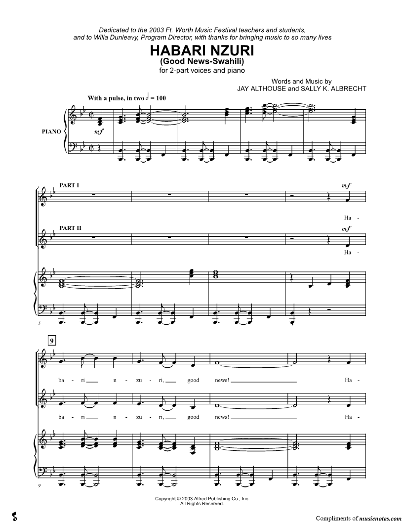 2-Part Choir, range: Eb4-F5 Piano | |