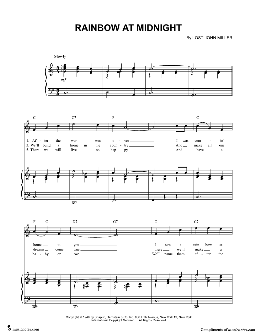 After the war was over I was comin' home to you I saw a rainbow at midnight Out on the ocean blue. |