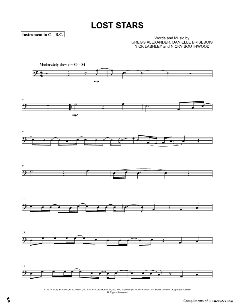 Lost Stars - Bass Clef Instrument |