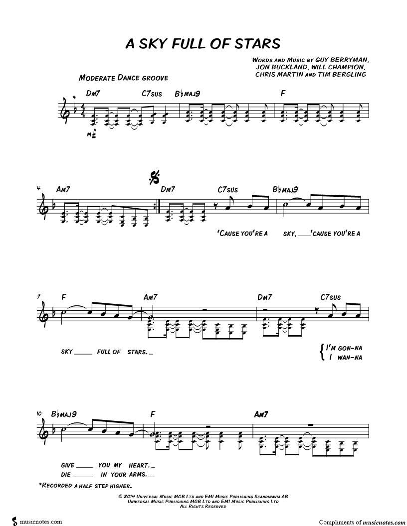 'Cause you're a sky, 'cause you're a sky full of stars. |