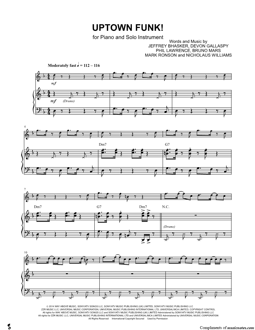 Collection: Uptown Funk - C Instrument & Piano
