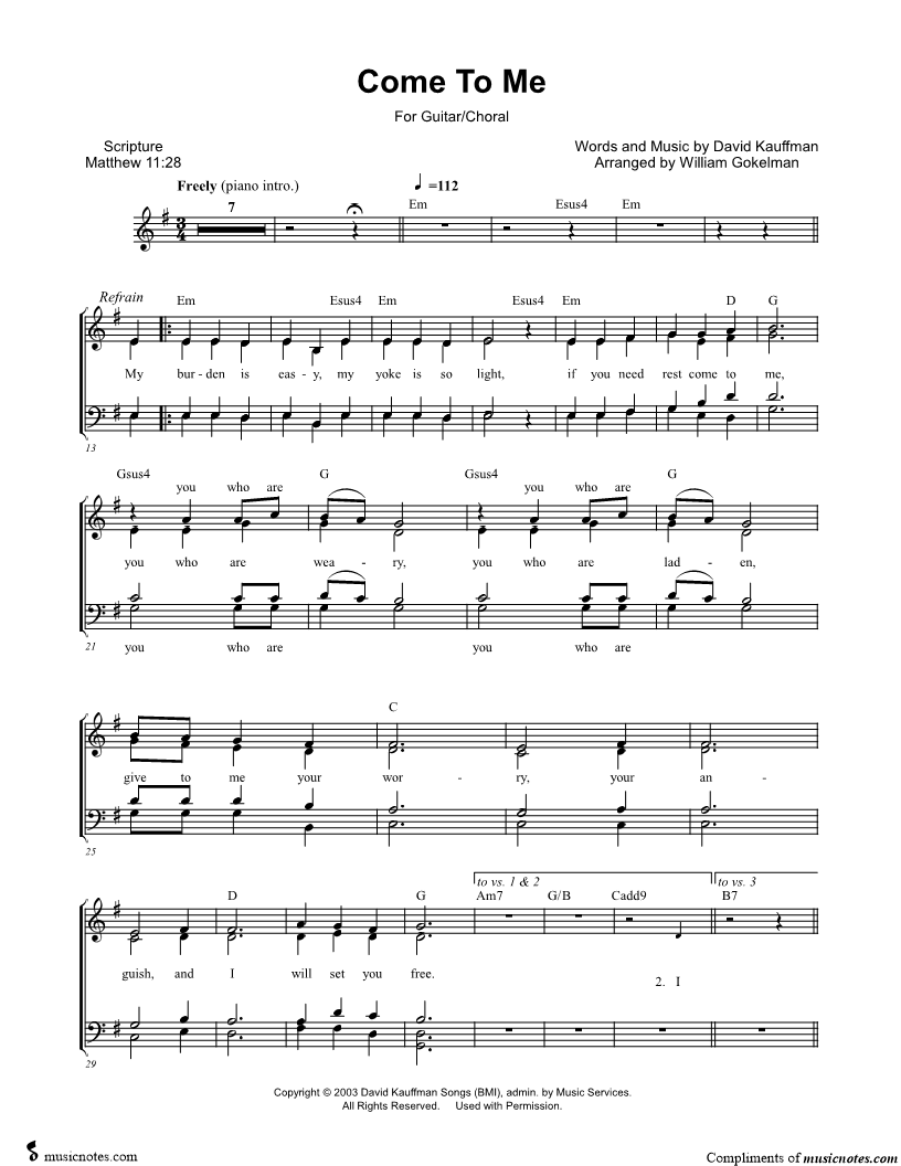 My burden is easy, my yoke is so light, if you need rest come to me, you who are weary, you who are laden, give to me your worry, your anguish, and I will set you free. |